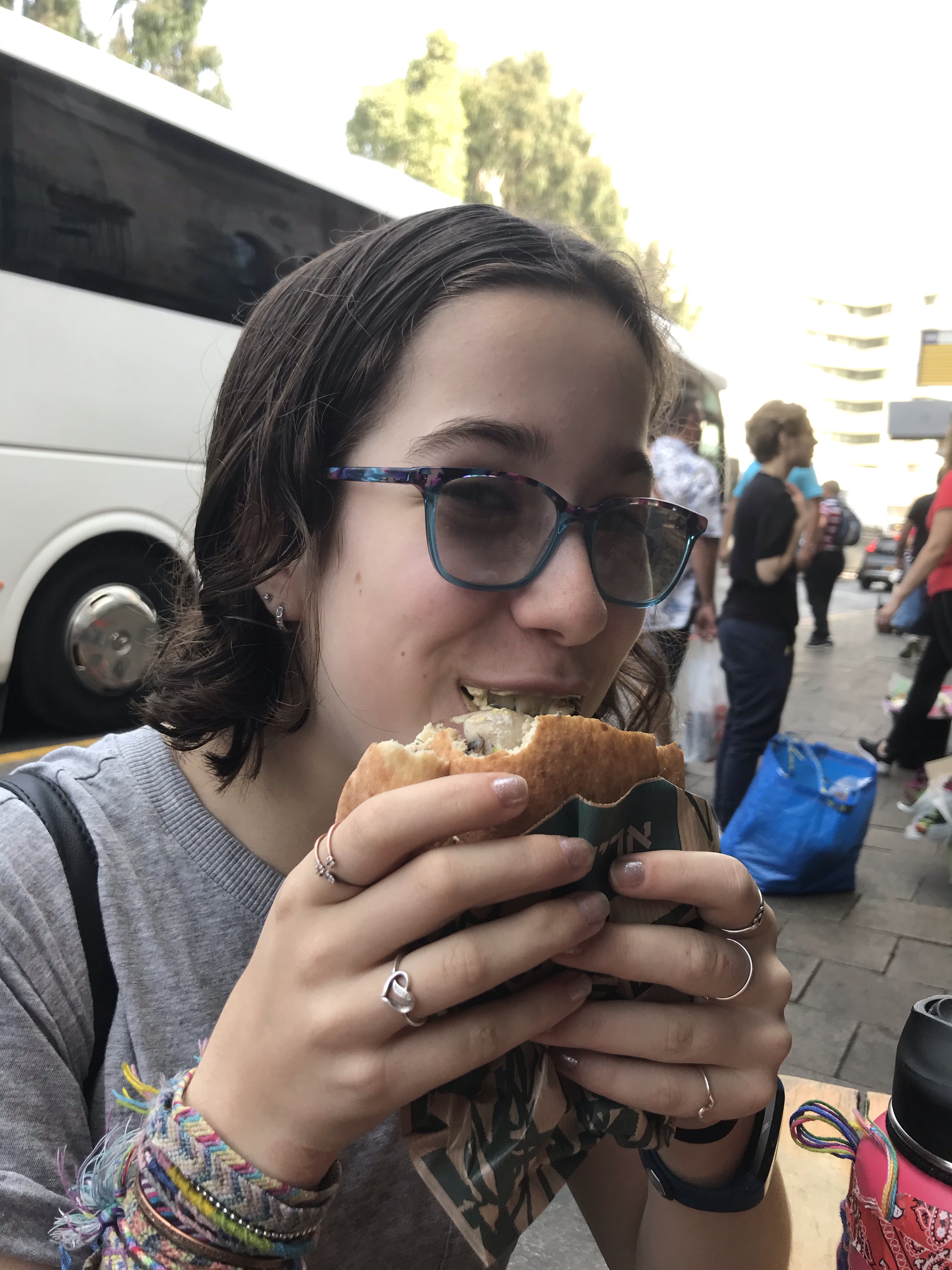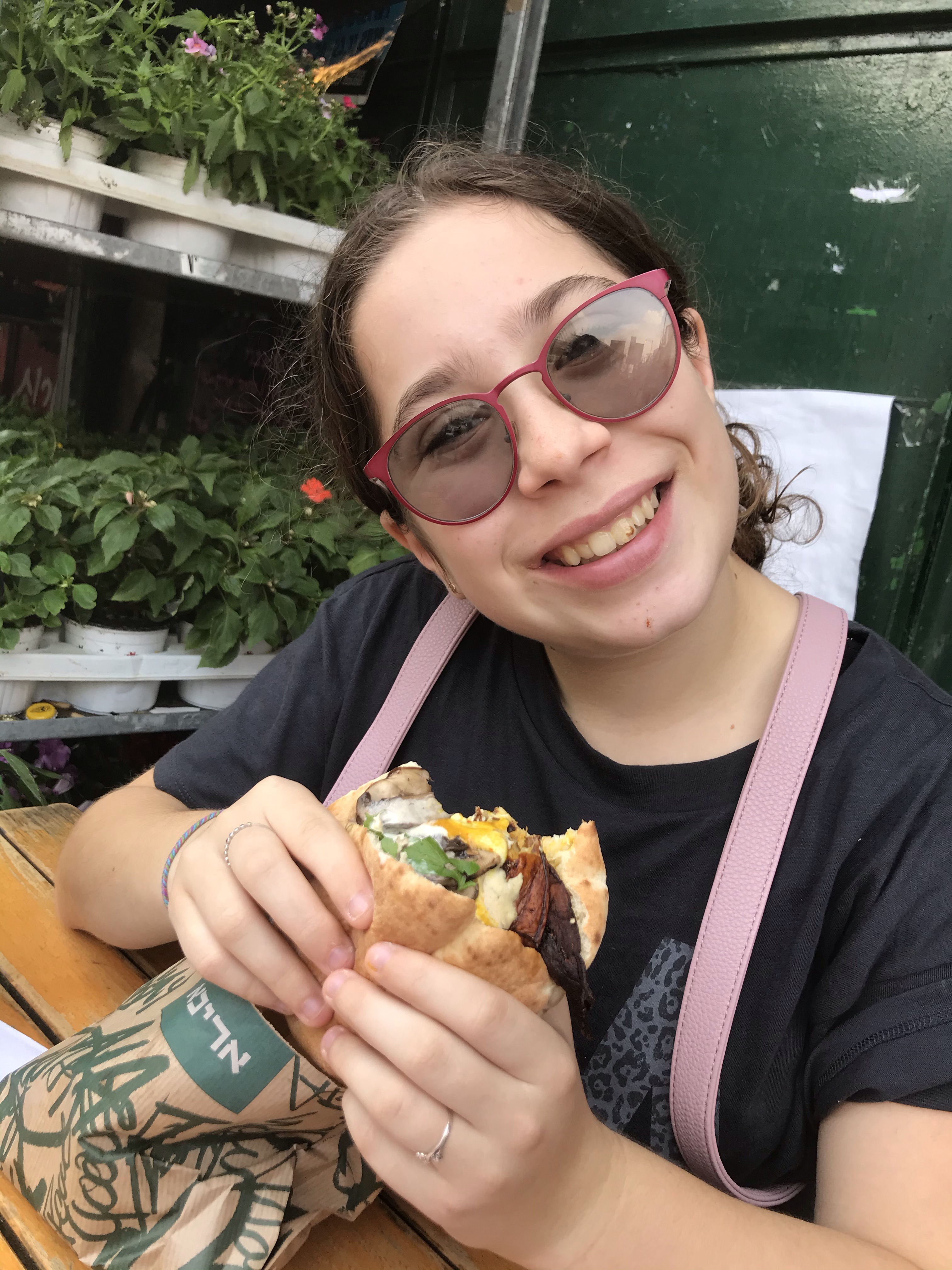 Enjoying a sabich sandwich