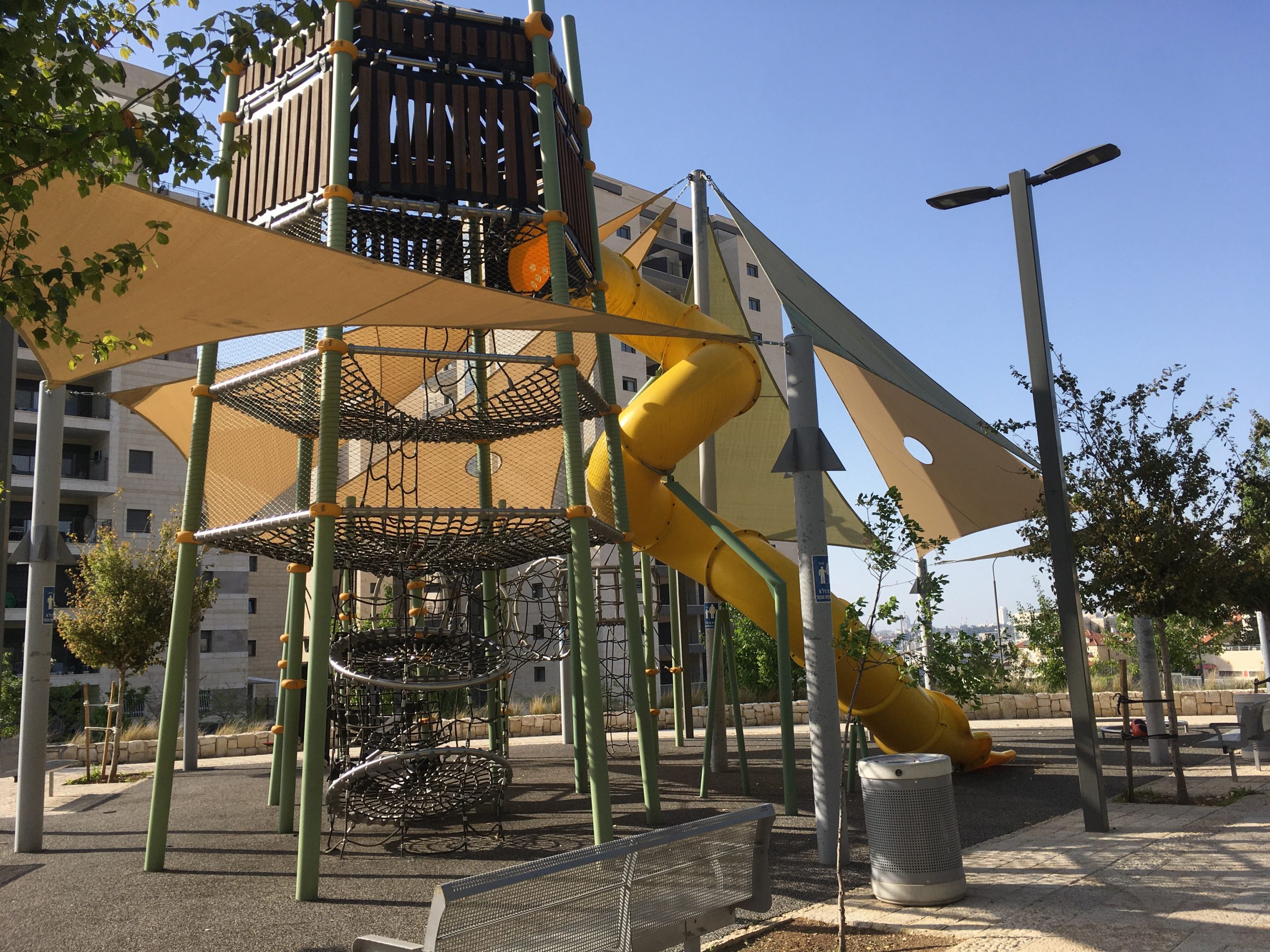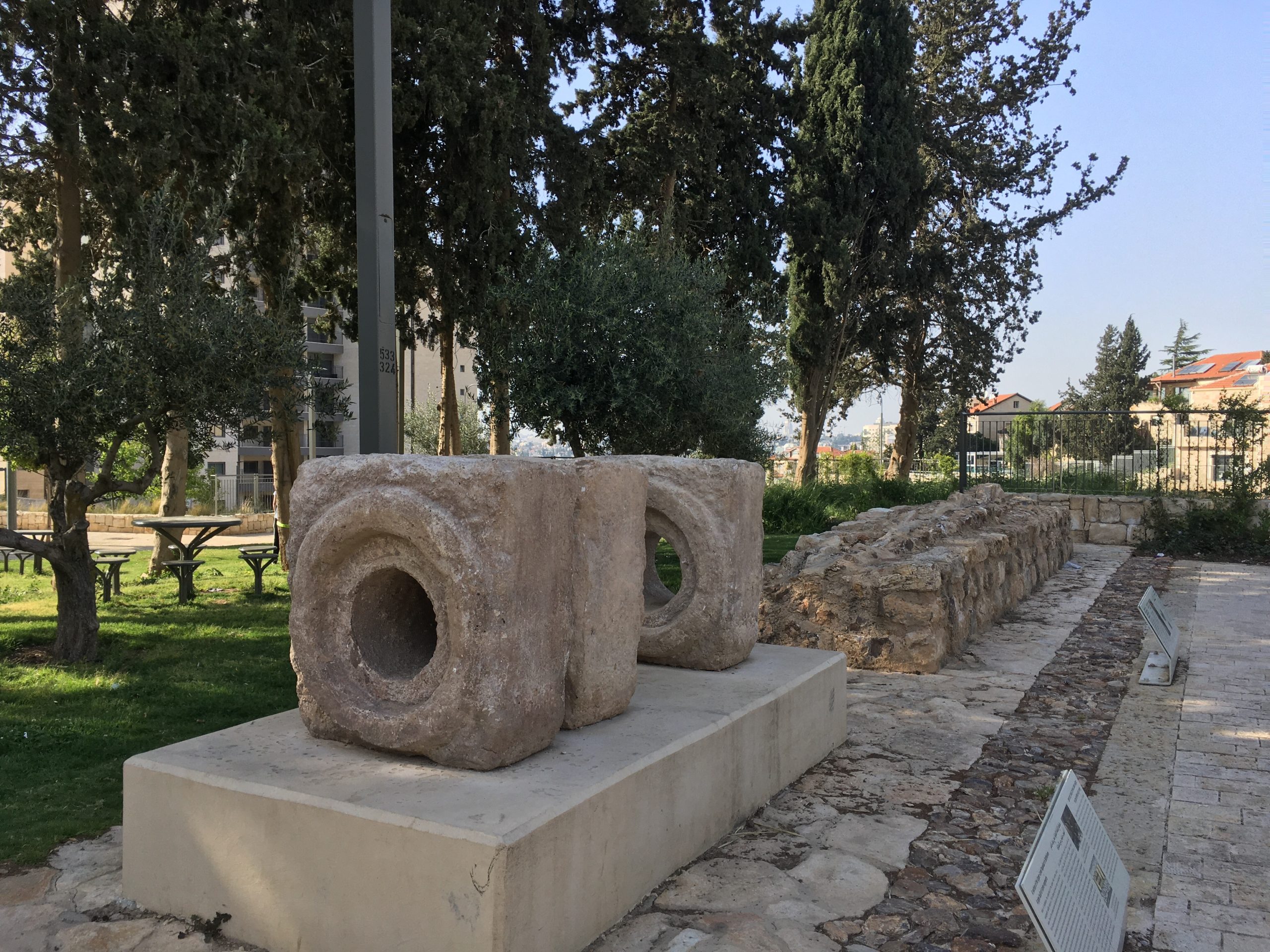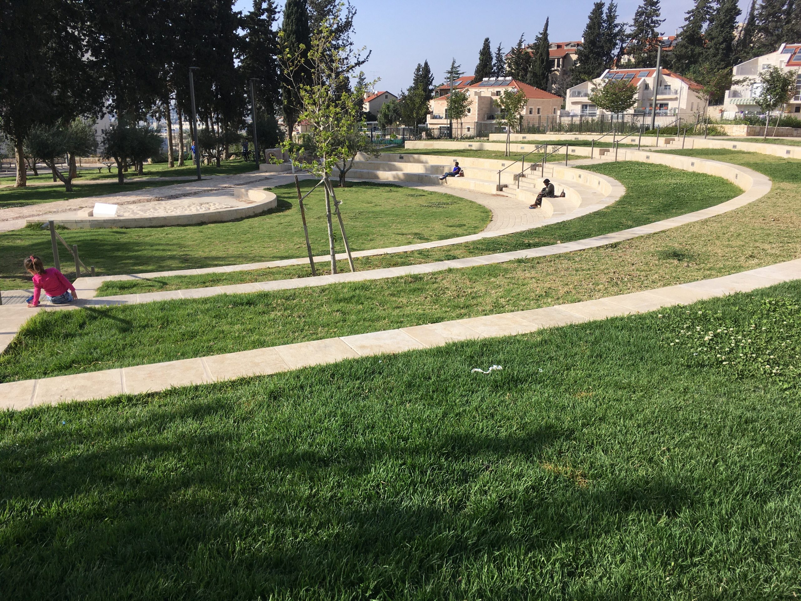 Recently we went on a walk around our neighborhood where Ima showed us ancient Roman aqueducts, a tree house, awesome playgrounds, some big grassy fields, and a few really nice buildings. The ancient Roman aqueducts were really cool and in the same area was a super cool playground and nice grassy areas to sit. One thing that is really nice about many playgrounds in Israel is they all have sun shades. There have been new playgrounds built that Naomi and I would even play on if we could. We saw a building that was almost done being built that is going to become a community center. This building was beautiful! It was modern, which I love, but I was surprised to see it because Jerusalem doesn’t have so many modern looking buildings.