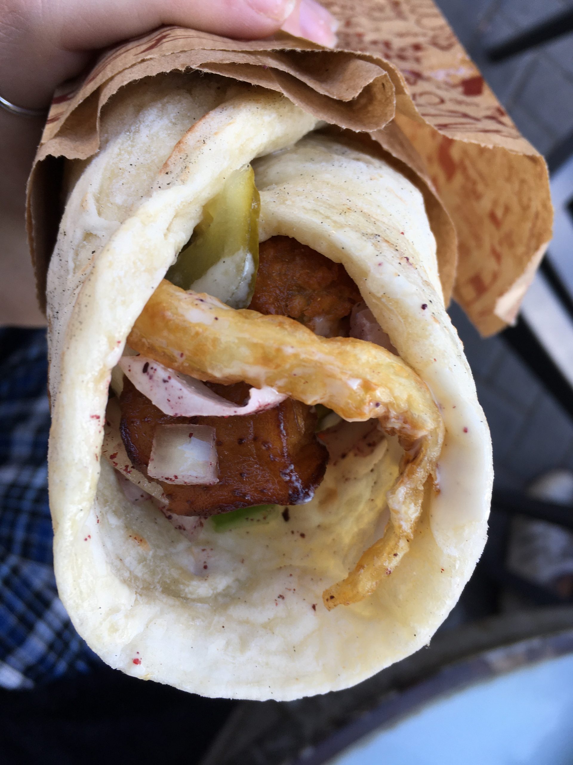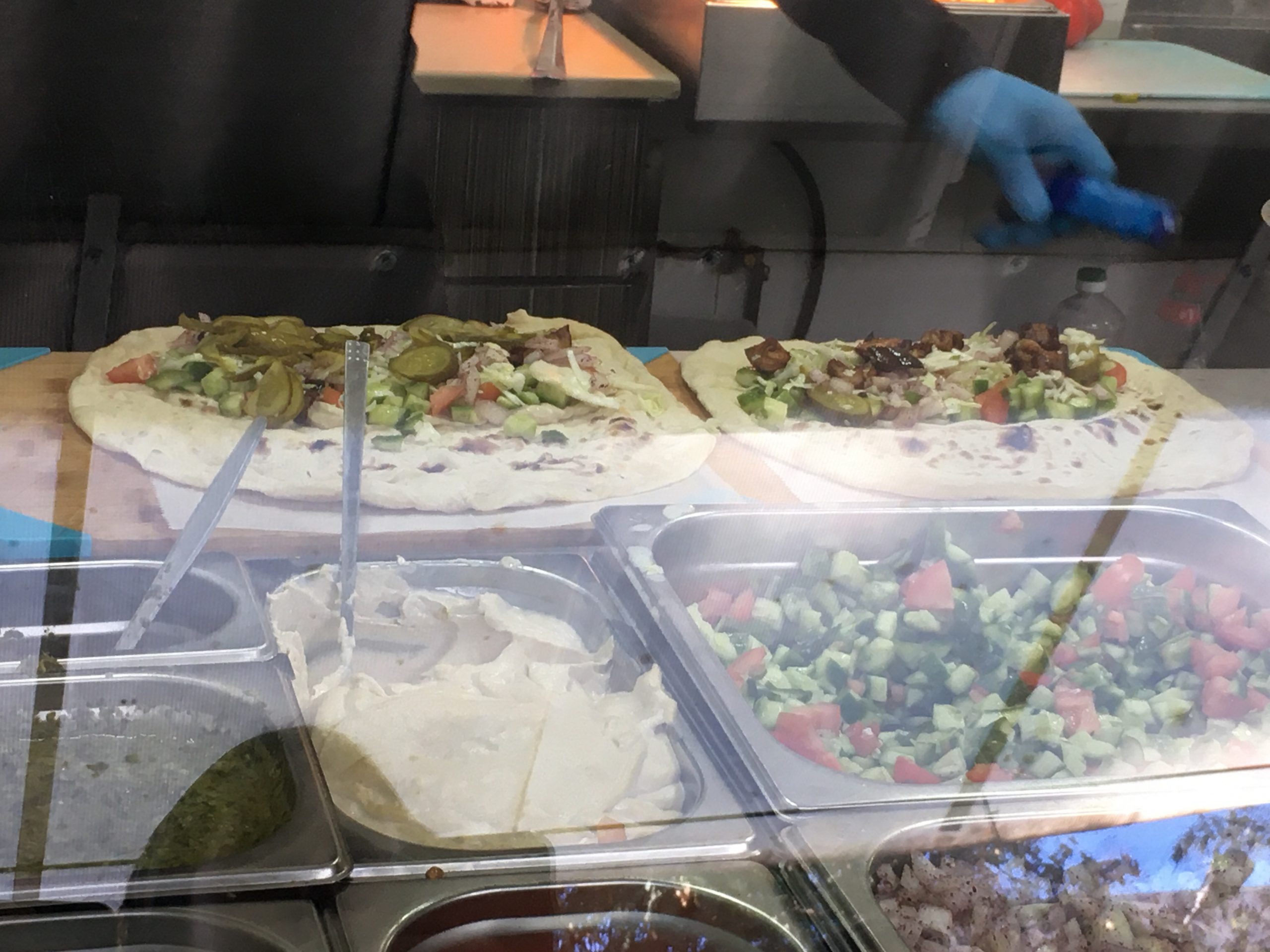 I have only had the opportunity to have my falafel with eggplant a few times because this falafel place gets a lot of customers and runs out of the eggplant after lunch time.