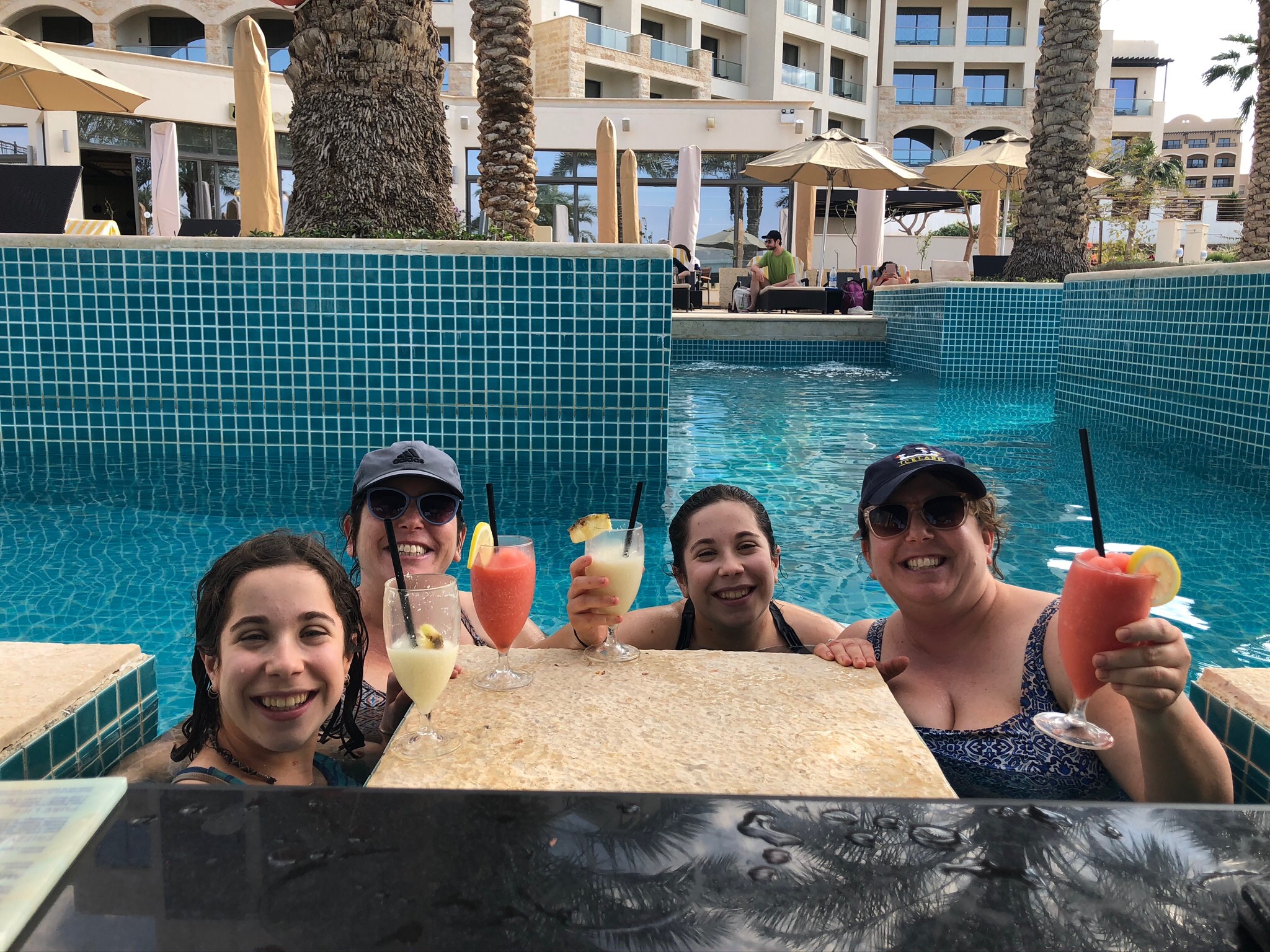 Enjoying pina coladas and fruit drinks at the swim up bar