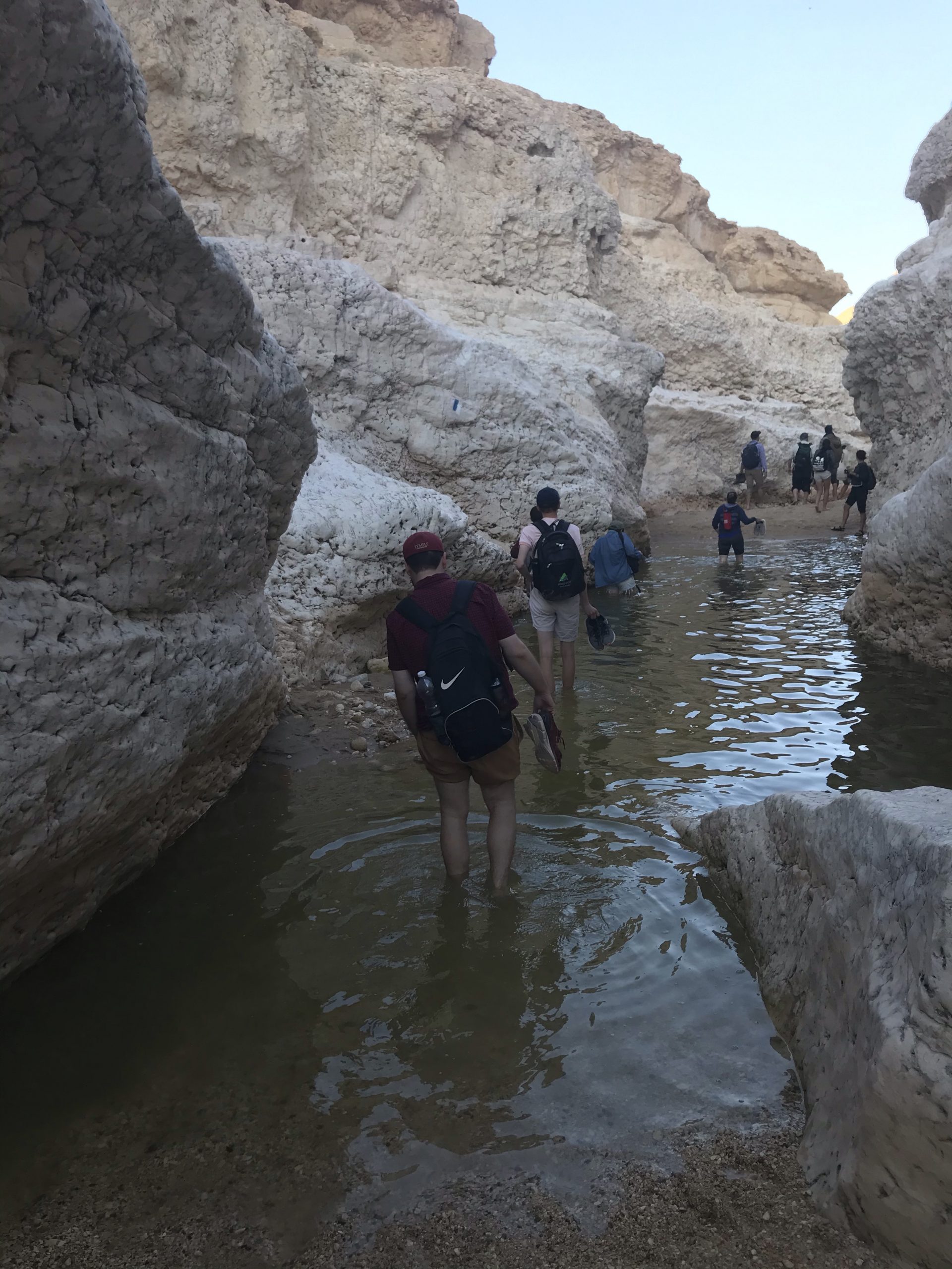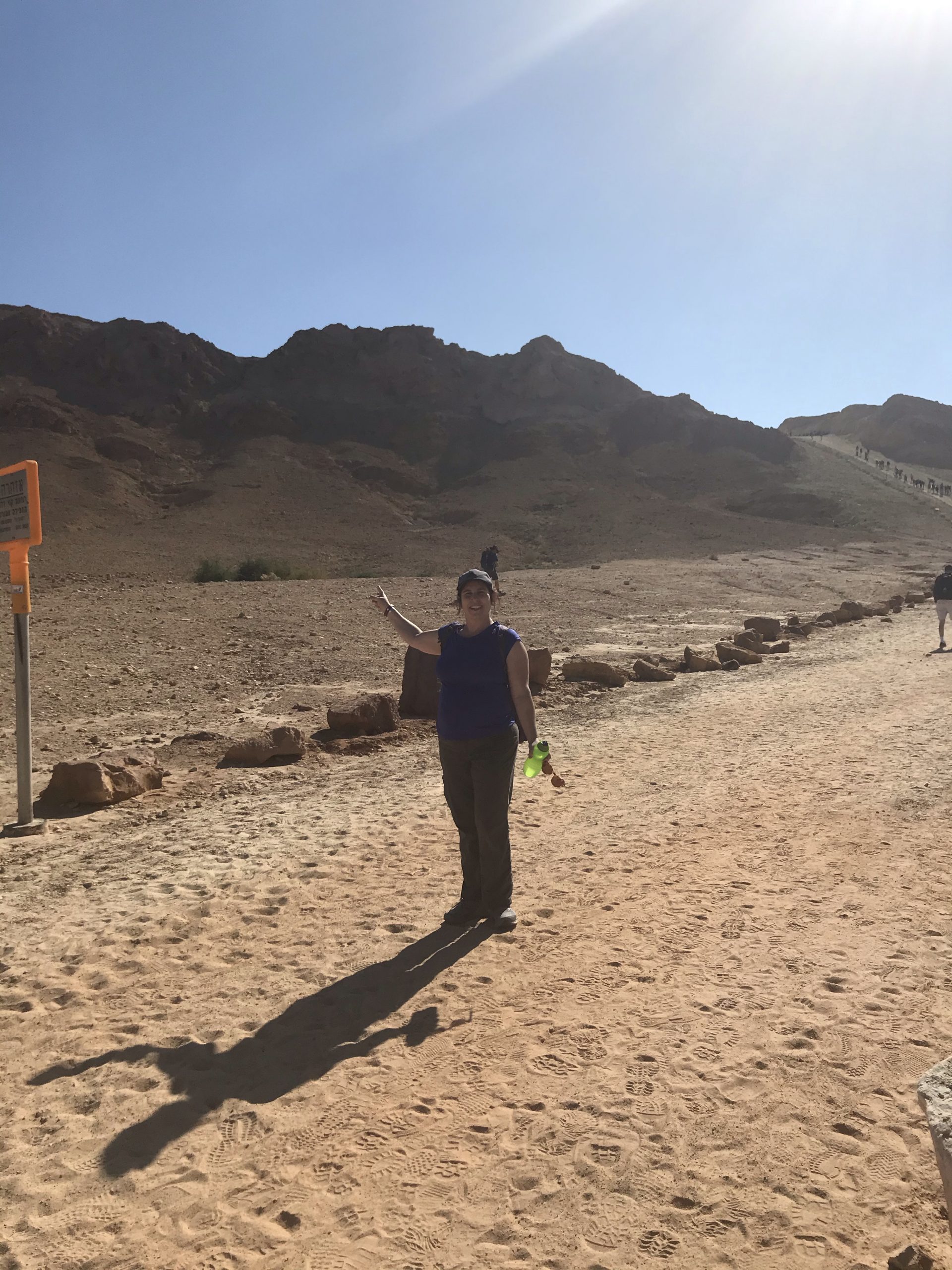 I left early this morning to join Pardes (where I’m studying) for a hiking trio in the Negev desert. Today we hiked in machtesh Ramon. A machtesh is a former mountain where the middle got carved out through erosion by water over millions of years, with the erosion only going out one side. There are only three in the world. All in Israel. Beautiful hike though quite challenging especially when we came across tel surprise pools of water that we needed to traverse or climb up and down steep rock to bypass. I waded up to my waist in the first pool and learnt how to rock climb to avoid the second pool which would have gone up to my armpits. We also saw ibex (too far away to photograph) and cane across lots of Hebrew and Arabic speaking teens doing the same hike with their schools.