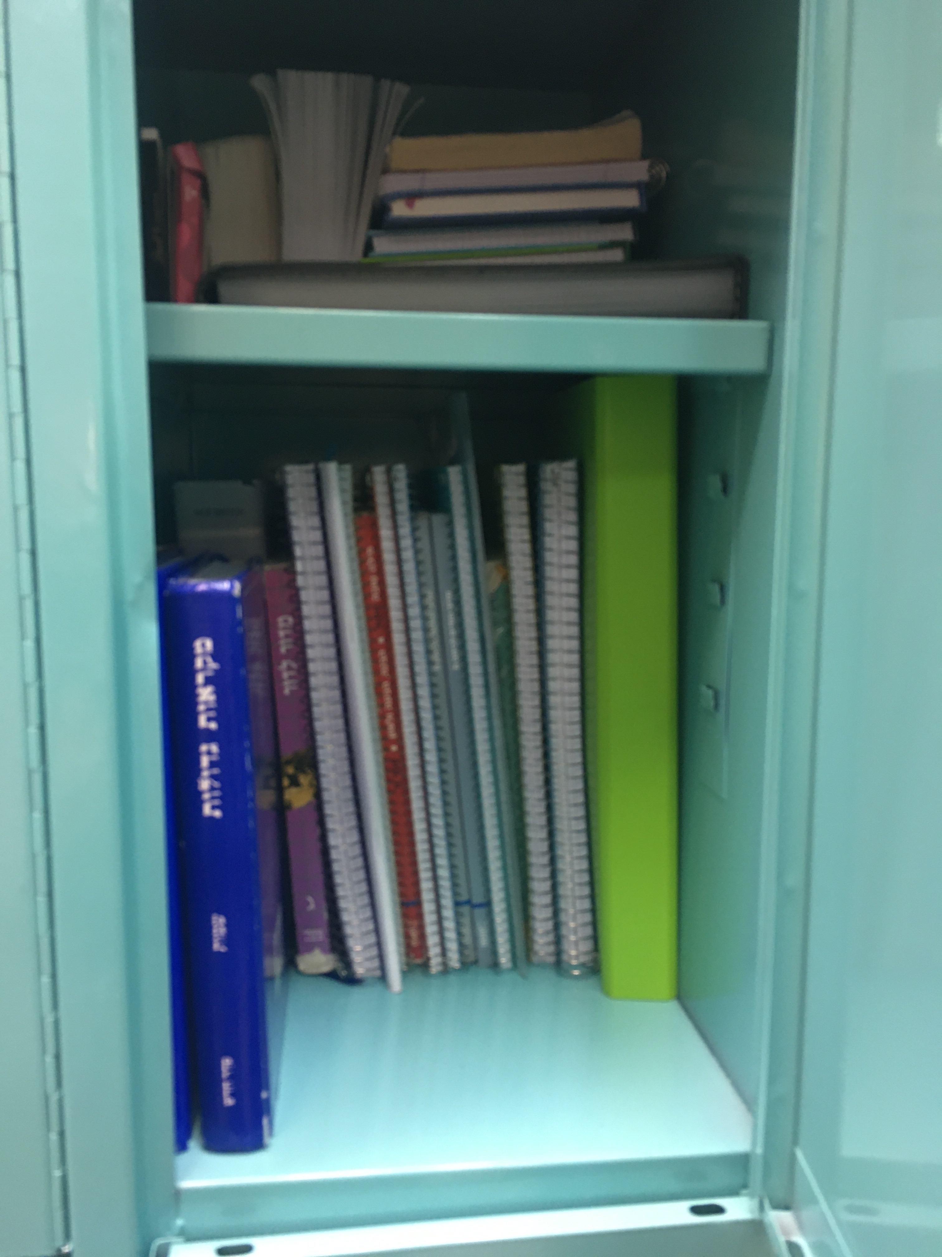My waiting paid off because unlike most of the lockers at my school which are an ugly beige color, the new lockers are a pretty blue. They also have a shelf which you can adjust the height of.