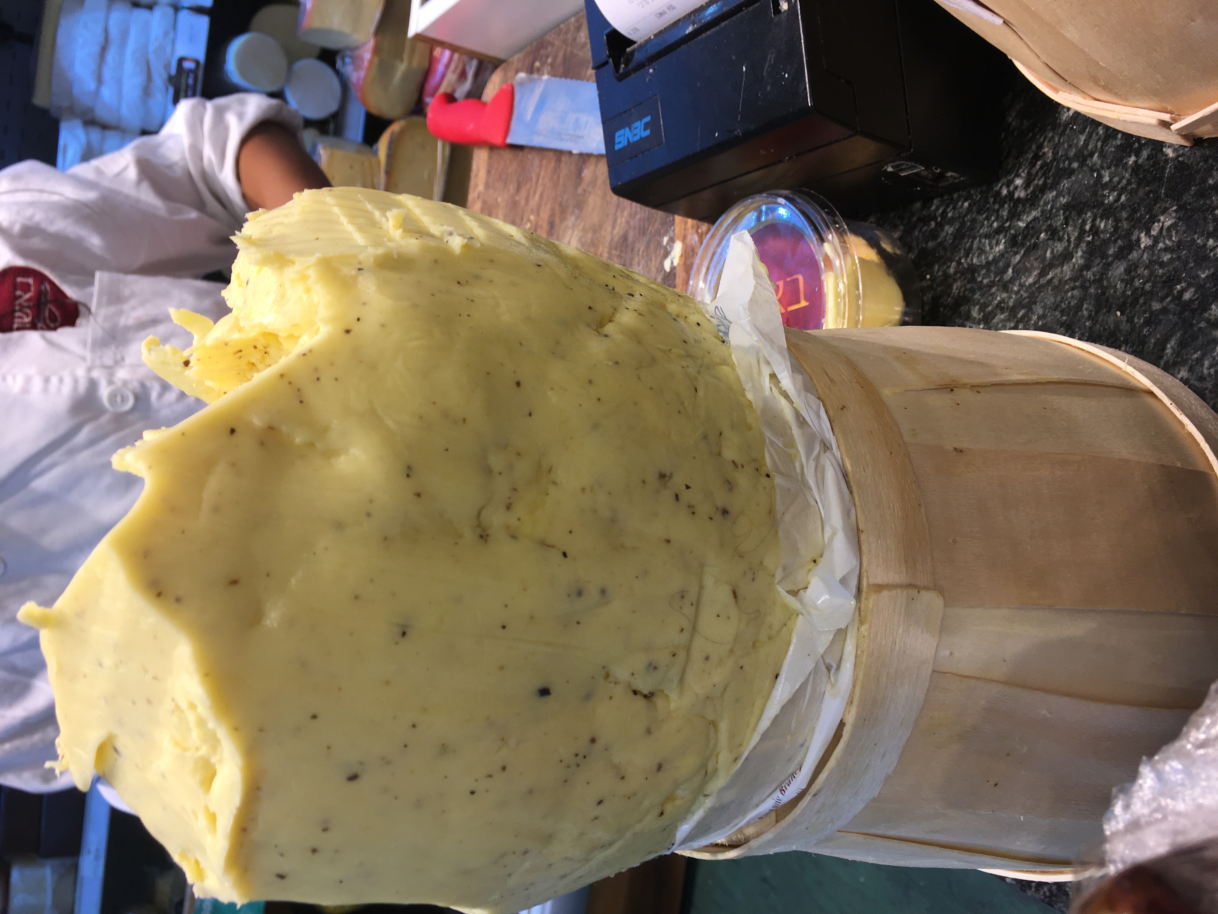The rectangular cheese wrapped in red is the special cheese from Norway