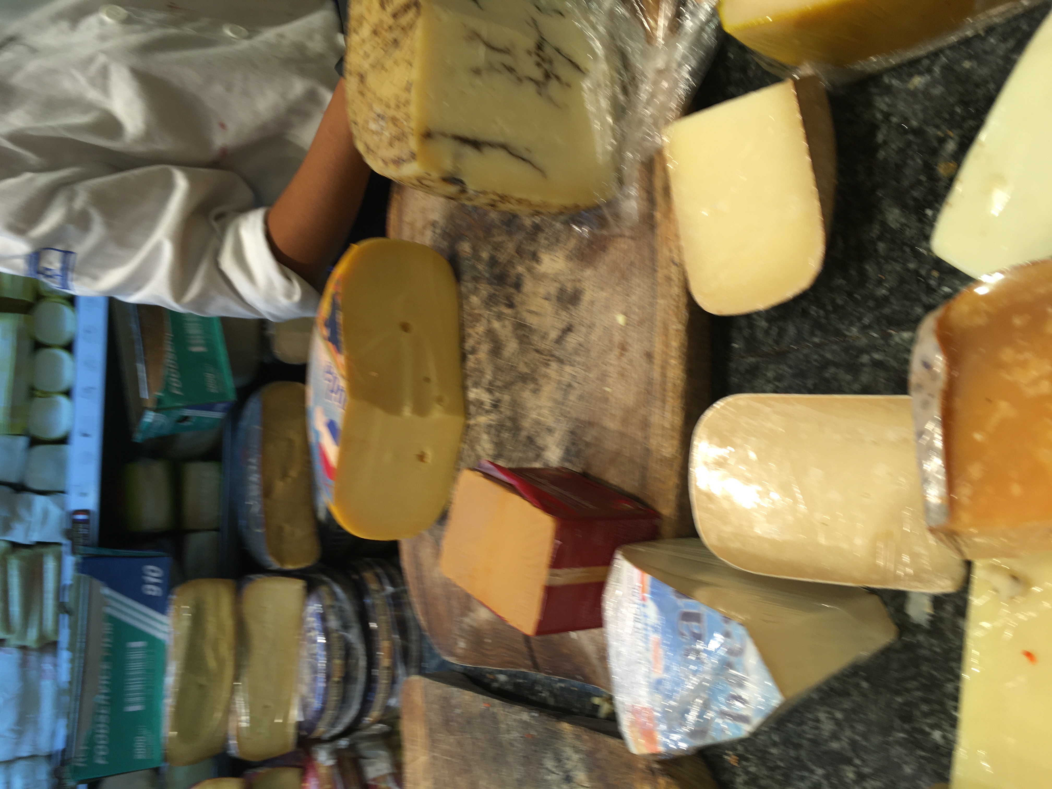 They have many cheeses; colorful, traditional, and unique flavors. The cheeses we tried were grue yare from Switzerland, gouda from Holland which is pronounced gow da, cheese with pesto and dried tomatoes also from Holland, feta with pesto which is Israeli, carmel which is from Norway, and truffle cheese.