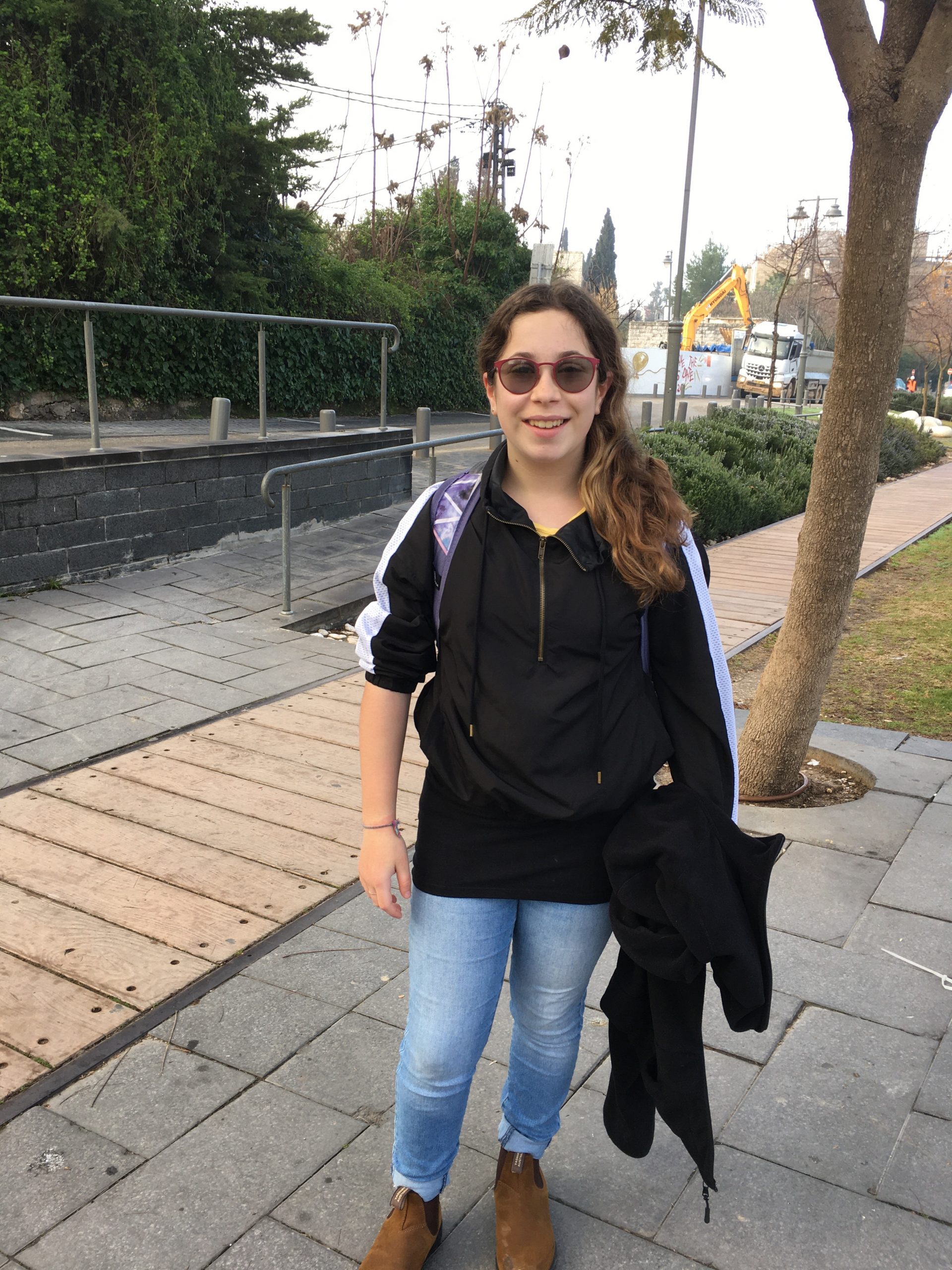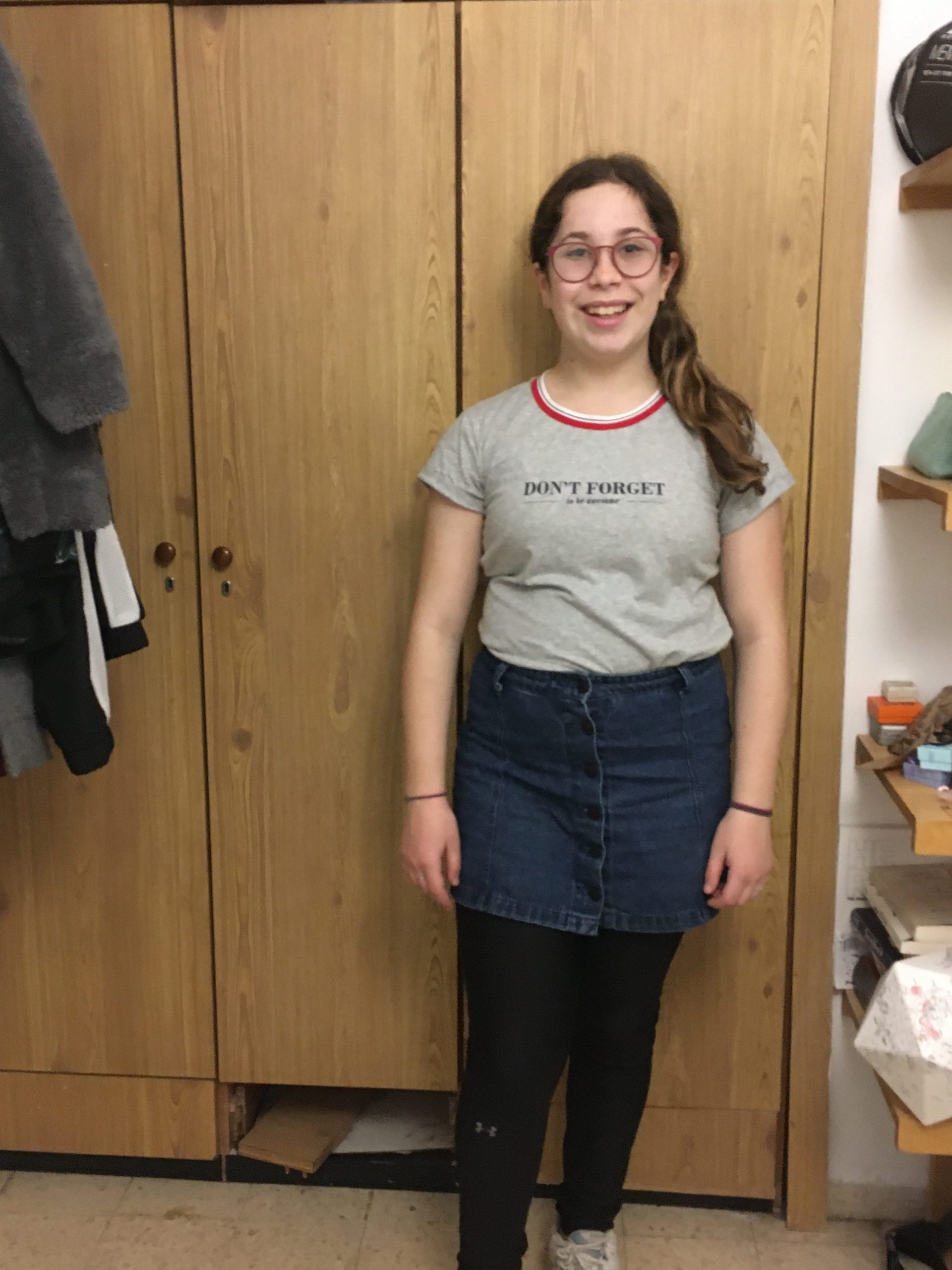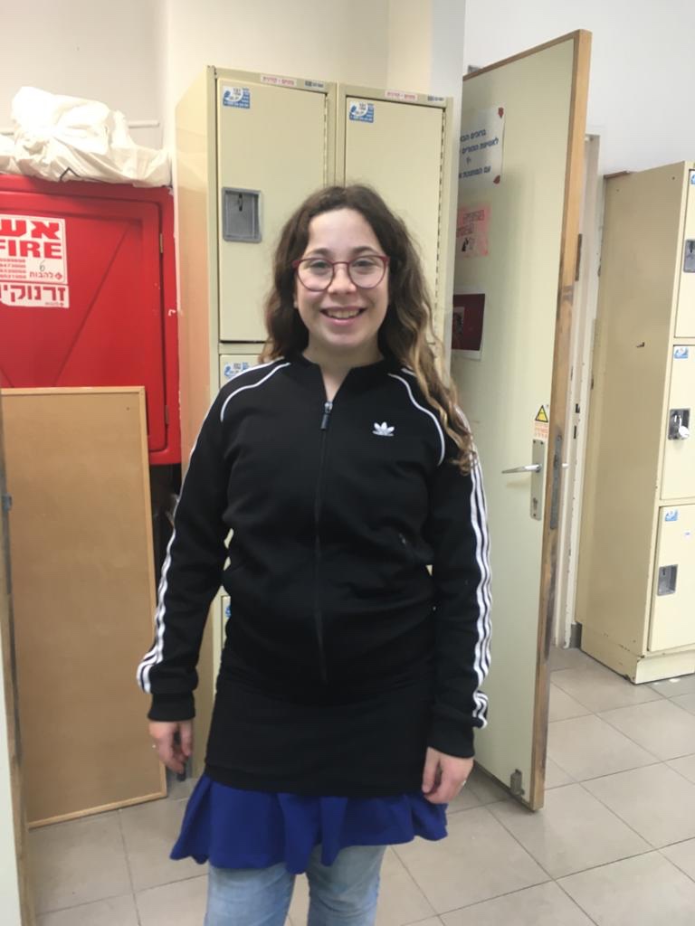 The bright blue skirt belongs to the school and my skirt is black so it blends in with my jacket