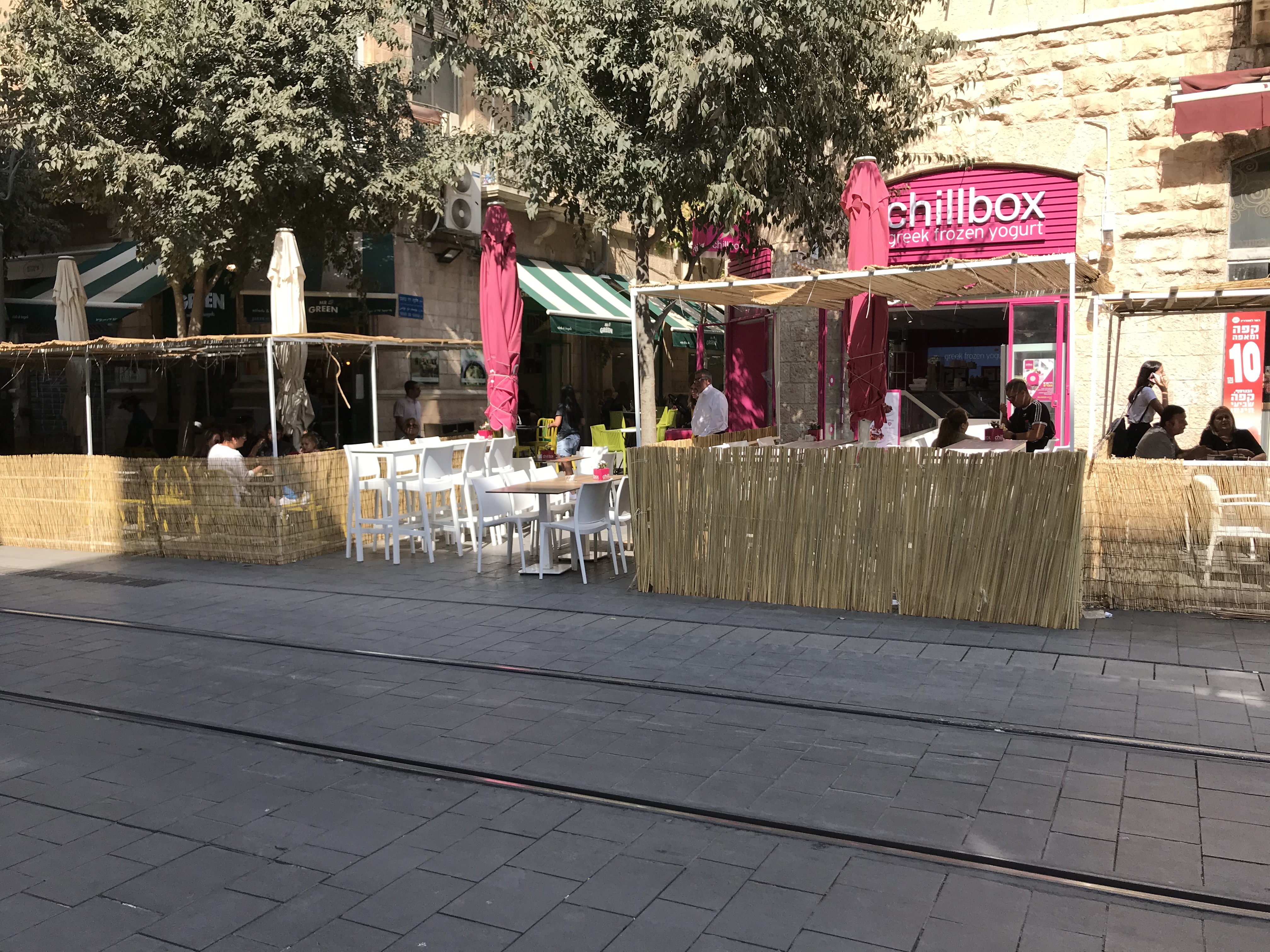 On porches Perfect for al fresco dining Jerusalem city hall sukkah Even mobile ones (it’s attached to a bike)