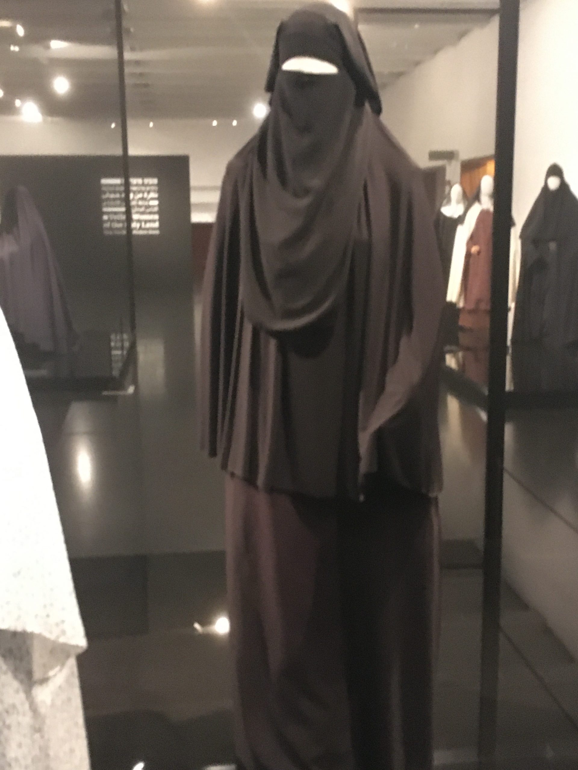 The exhibit was about new trends in modest dress for Christians, Muslims, and Jews. There were mannequins dressed as women of different religions and explanations about what they were wearing, and a video with three actresses (one actress played the role of a Jew, one played the role of a Muslim, and one played the role of a Christian) talking about the different layers of clothes that they wear.
